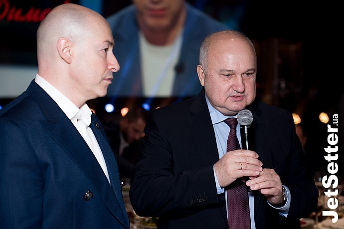 Леонид Кравчук, Анна Герман, Александр Омельченко, Ирэна Кильчицкая, Виталий Кличко, Александр Мороз, Игорь Никонов, Вагиф Алиев, Игорь и Григорий Суркисы и Саакашвили толкали тосты за Гордона.
