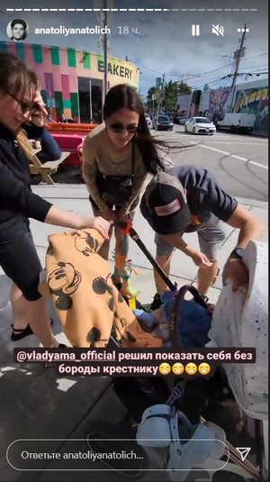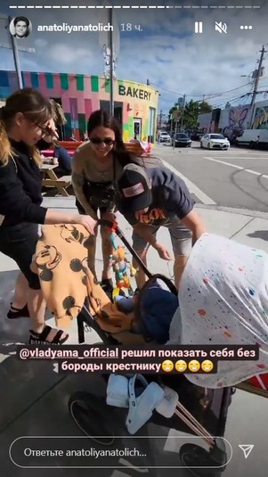А теперь новая встреча: с семьей телеведущего Анатолия Анатолича. Журналист приехал во Флориду всем составом: Анатолич, его жена и трое детей. Влад Яма – крестный маленького сына телеведущего Нила. Рассказывая в сторис своей страницы в Инстаграм о встрече хореографа с крохой-крестником в Майами, Анатолич пошутил: «Крестный решил показаться крестнику без бороды». Две семьи немного погуляли по городу, а потом отправились в гости к Ямам – семья Анатолича приготовила им вечерю.