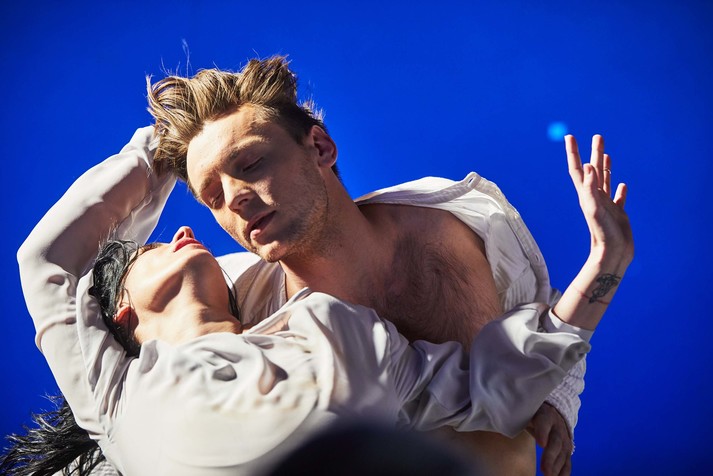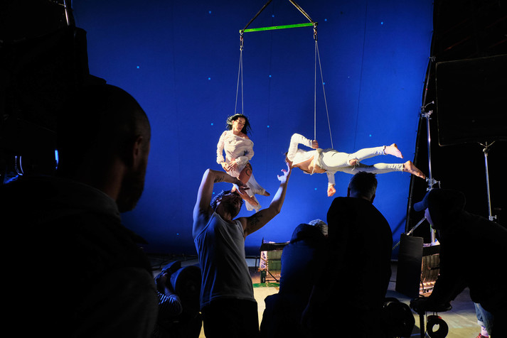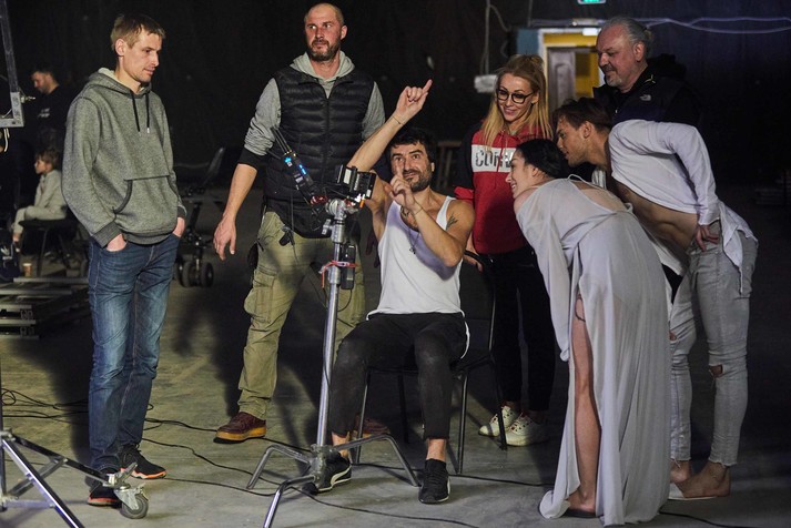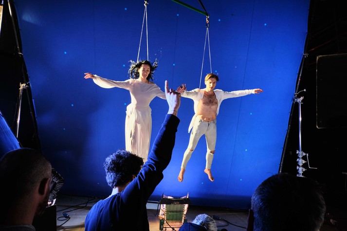 «У нас уже есть большой опыт работы в воздухе. Нас поднимали на специальных креплениях и тросах. Единственный момент сложности в том, что кожа очень быстро натиралась от креплений и становилось тяжелее исполнить трюки. Если бы кто-то из танцоров делал это впервые, то думаем на 2-3 дубле съемки прекратились бы. Это очень сложно. Только благодаря длительной подготовке и опыту мы смогли реализовать идеи режиссера». – поделились эмоциями артисты балета Freedom Юлия Зима и Павел Бондаренко.
