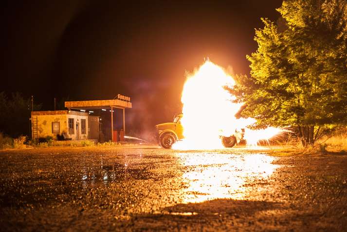 Съемочная группа успешно отсняла одну из самых сложных сцен картины – взрыв бензовоза. К работе над эпизодом привлекли специалистов-пиротехников и пожарных.