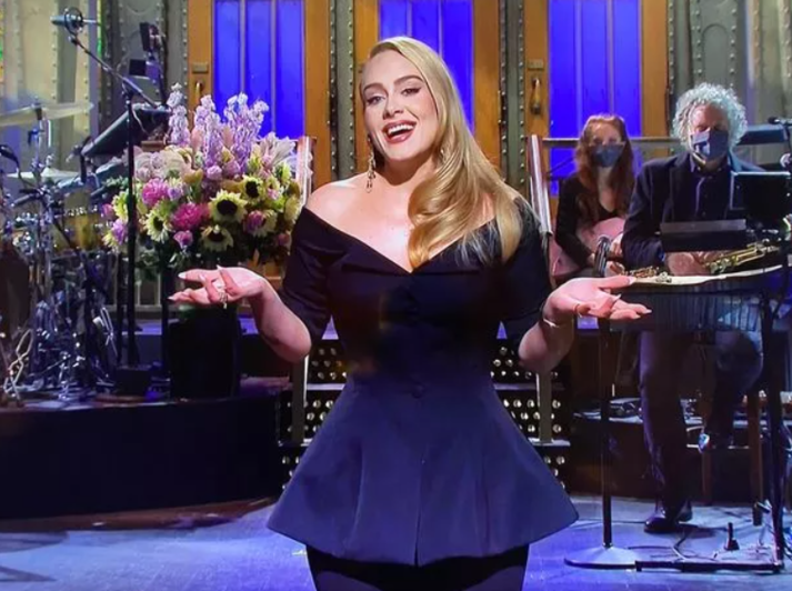 В карьере звезды тоже наметился неожиданный поворот. Она дебютировала в качестве ведущей знаменитого комедийного телешоу Saturday Night Live. В первом выпуске Адель предстала в подчеркнуто женственном и элегантном образе. Она надела обтягивающую блузу с открытыми плечами и укороченные брюки. Этот ансамбль авторства Valentino идеально подчеркнул формы звезды.