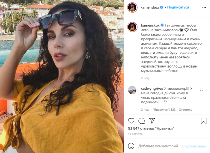 Каменских не скрывает, что до сих пор находится в процессе принятия себя. А стресс, который она пережила после потери отца в начале 2021-го, прекратила заедать только полгода спустя. Певица уверена, все начинается с головы, а красивое тело — это прежде всего работа над своими мыслями.
