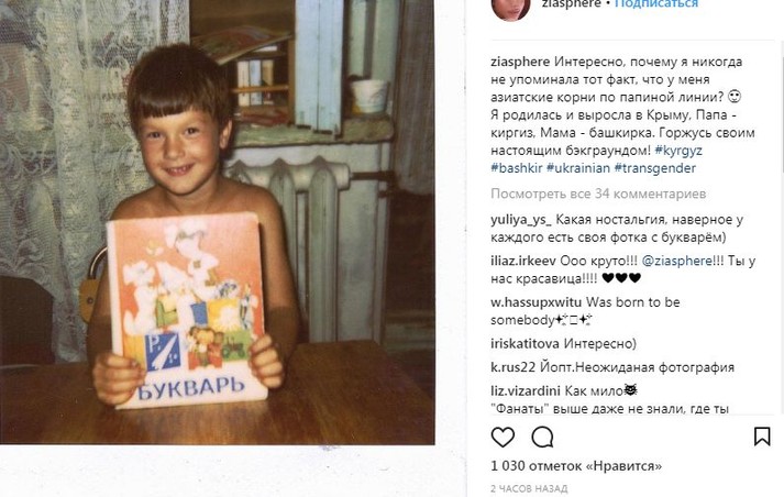 «Мама до последнего хотела назвать меня Марком, а бабушка настояла на имени Борис. Но прошли годы и я нашла свое истинное имя», - прокомментировала одну из фотографий Зианджа.