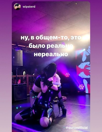 «Ну, в общем-то это было реально нереально… Эти поцелуи», – указала в Instagram stories Maruv. «Из последних сил. Танцевать летом в латексе – то еще удовольствие, скажу я вам», – поделилась впечатлениями Ольга Бойко.