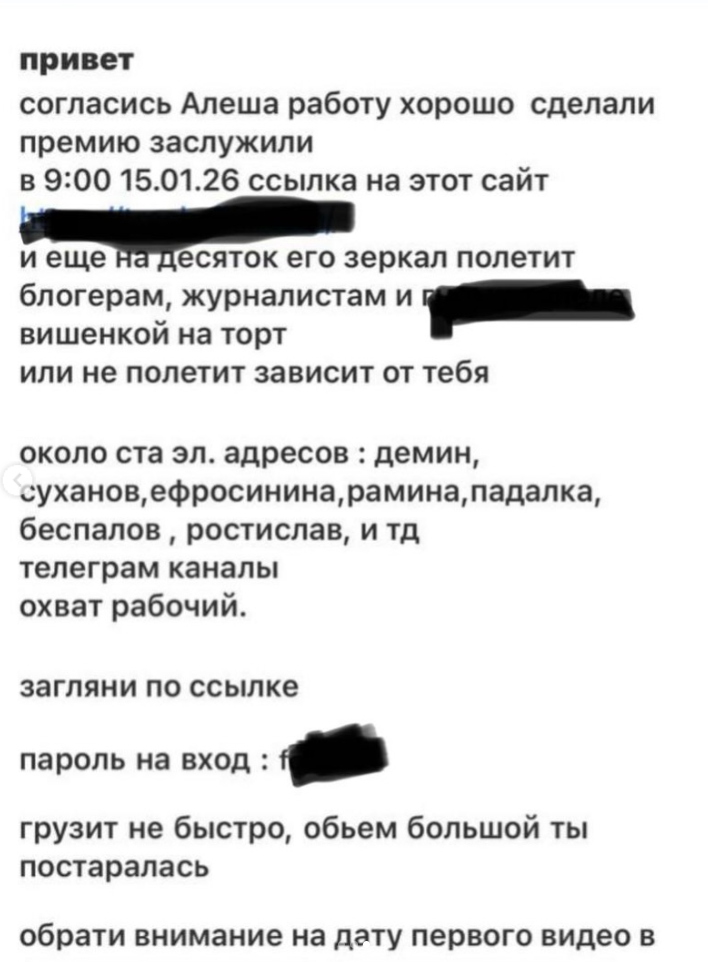 Співачка повідомила, що 10 січня отримала погрози шантажу через відео інтимного характеру, а також вимагання грошей, спроби маніпуляцій і навіть вимоги компромату на близьких. Вона опублікувала скріншоти повідомлень, які їй надсилали вимагачі.