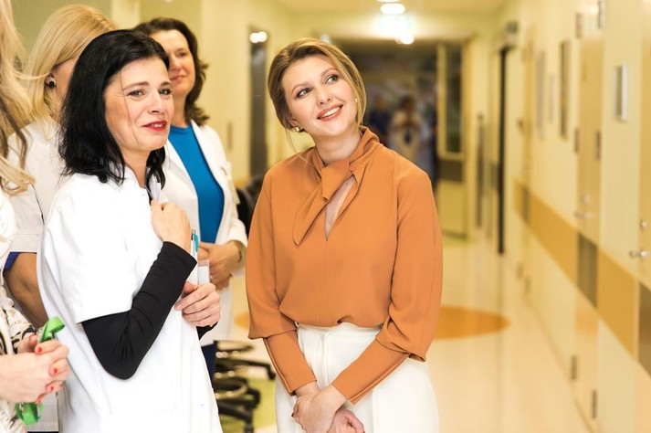 Супруга президента Украины Елена Зеленская во время официального визита в Эстонию с первых секунд поразила изысканным нарядом – белоснежным шерстяным пальто от украинского бренда Lake Studio, который создали в 2008 году дизайнеры Олеся Кононова и Анастасия Рябоконь, брюками палаццо от The Coat и блузой терракотового цвета.