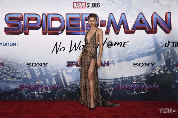 Зендея надела весьма пикантное платье на тонких бретельках с глубоким V-образным декольте и разрезом от Maison Valentino. Платье телесного цвета было почти без спинки, за исключением тонких черных перекрещенных бретелей, и было украшено черными бусинами, напоминающими паутину. Актриса дополнила образ туфлями Christian Louboutin, которые также сверкали, и заплела волосы в косы, доходившие до талии. На голове у нее была вышитая бисером и кружевная маска для глаз, которая напоминала черного паука. У девушки был насыщенный вечерний макияж, а в ушах сверкали серьги с камнями.