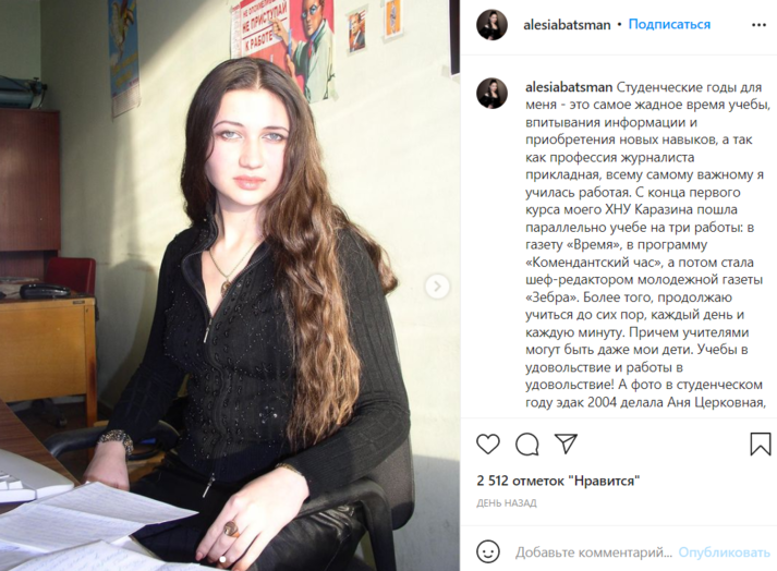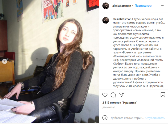 «Студенческие годы для меня – это самое жадное время учебы, впитывания информации и приобретения новых навыков, а так как профессия журналиста прикладная, всему самому важному я училась работая», – призналась она.