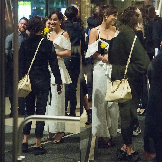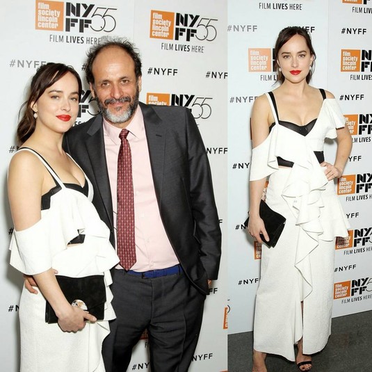 В таком виде артистка посетила премьеру фильма «Назови меня своим именем» режиссёра Луки Гуаданьино. Дакота снималась в предыдущей картине этого фильммейкера «Большой всплеск», а также сотрудничали на картине «Суспирия».
