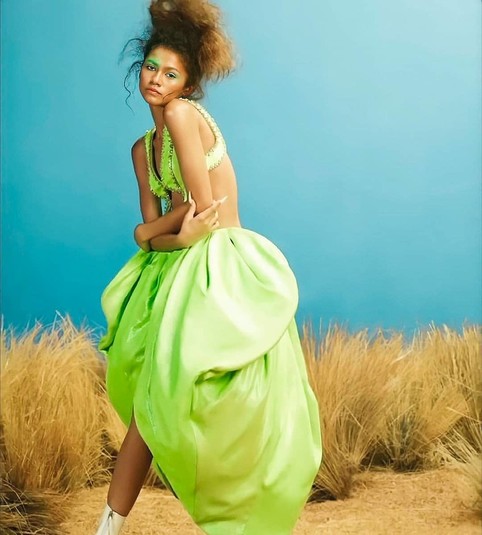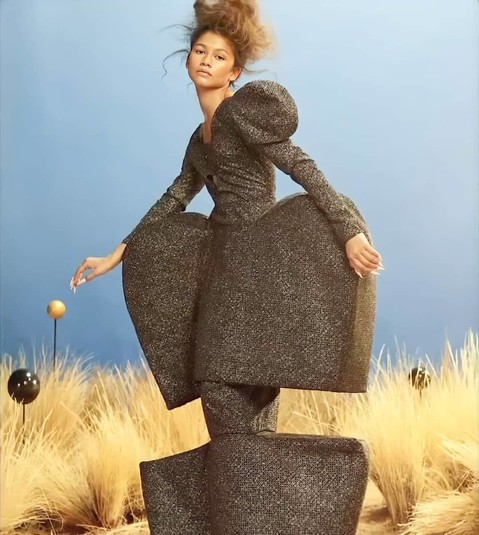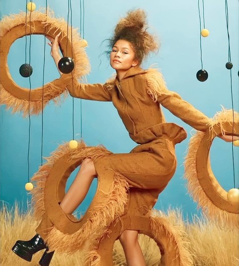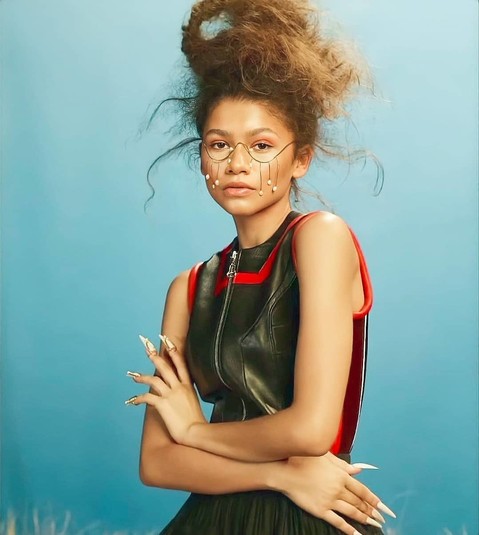 Вот и на этот раз Зендая снялась в необычном образе для ноябрьской обложки Vogue Гонконг. Девушка предстала в пышной юбке с воланами, топе и с «вороньим гнездом» на голове. Зендая также примерила очки в тонкой оправе с кристаллическими подвесками, которые напоминают слезы.