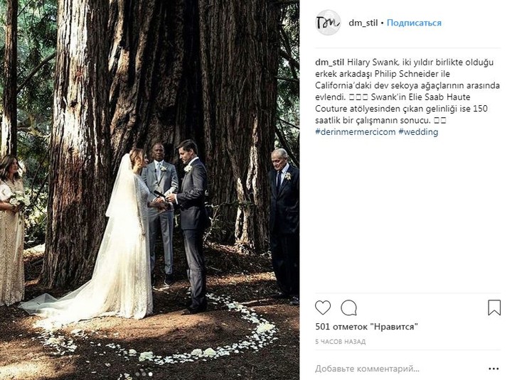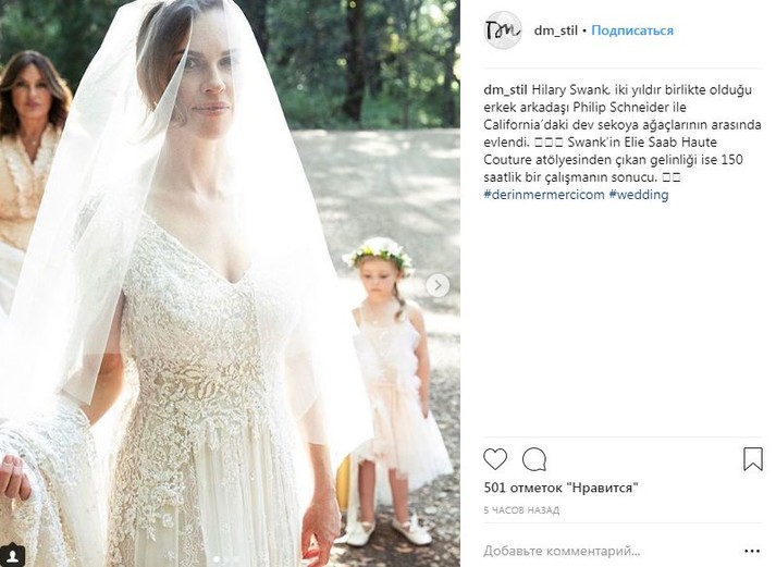 Невеста была в кружевном платье Elie Saab Haute Couture Atelier, которое дизайнеры бренда создали эксклюзивно для нее. Хилари осталась невероятна довольна своим свадебным нарядом.