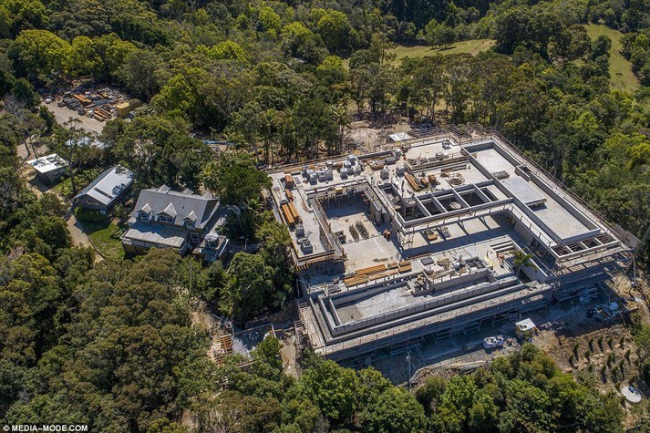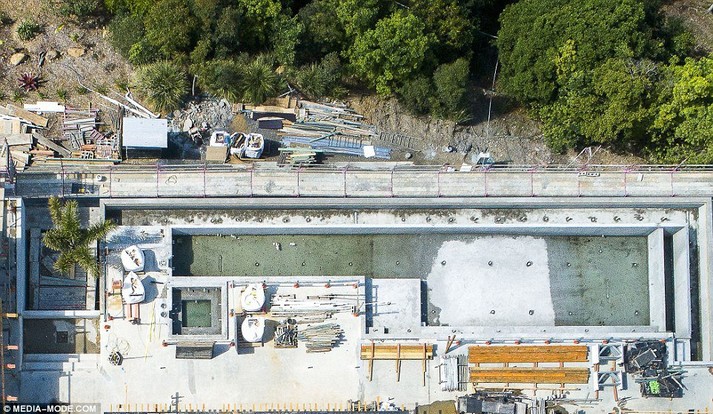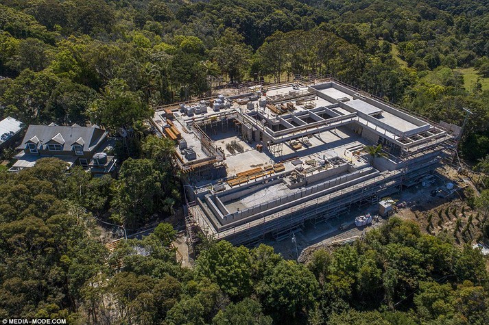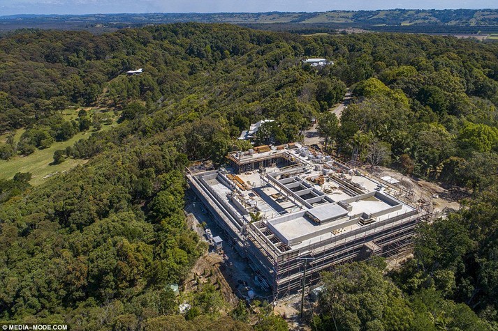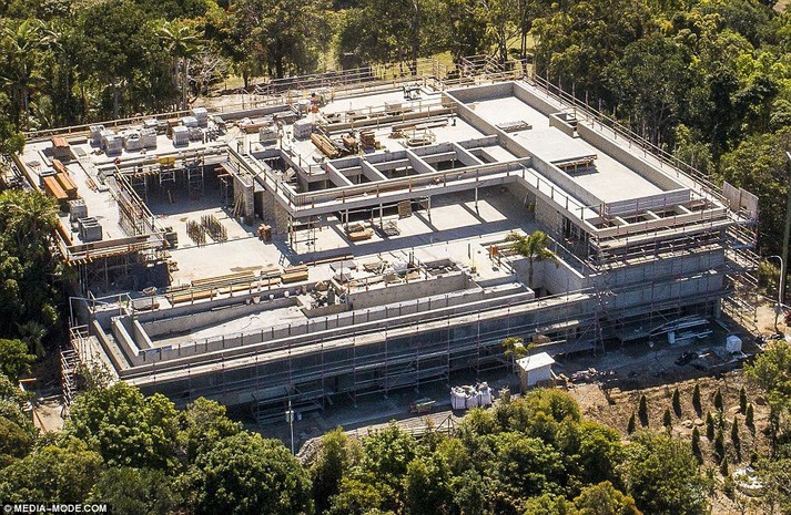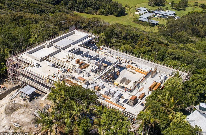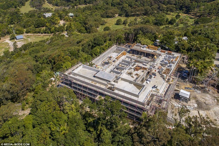 Супруги строят настоящую крепость, фото которой попали в Daily Mail Australia, на снимках здание напоминает военную базу или огромный шопинг-мол, о чем свидетельствует форма, монолит, огромные платформы. Огромный бассейн будет на крыше.