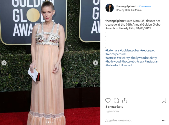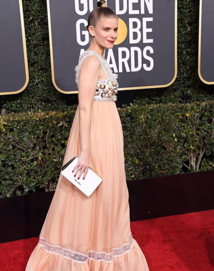 35-летняя Кейт Мара посетила церемонию вручения премии «Золотой глобус». Девушка выбрала для появления на публике платье свободного кроя, чем спровоцировала слухи о беременности.