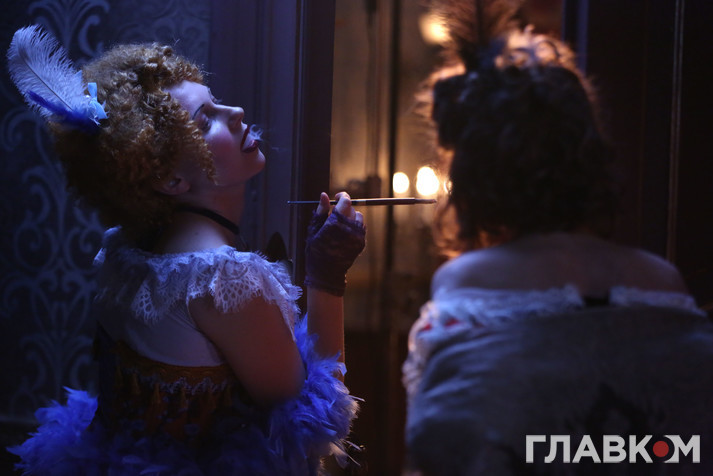 «Для сцен в борделе был построен очень красивый павильон – как будто отдельный бордельный мир. И девочки из дома терпимости, и хозяйка, которую сыграла Наташа Васько, и все клиенты – очень круто подобраны. Также там состоится первая встреча Катерины с Жаданом. Когда были сцены вечерних гулянок, красиво пускали дым, ставили приглушенный свет, веера, платья, была музыка, жонглеры с собаками. Будет завораживающий кадр, когда Катерина выходит играть на фортепиано, тогда на нее впервые надели платье с открытыми плечами, а для нее это слишком откровенно. И вот я играла на фортепиано, сзади все смеялись, веселились – это было очень атмосферно и мне почему-то это напоминало сцены из «Пиратов карибского моря», - вспоминает Катя.