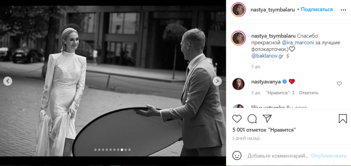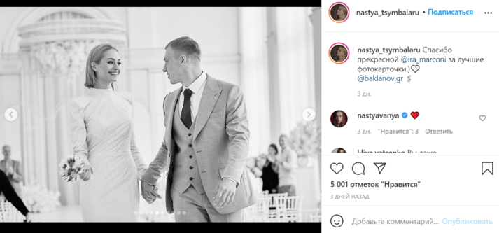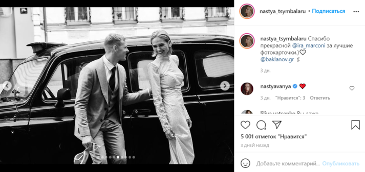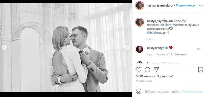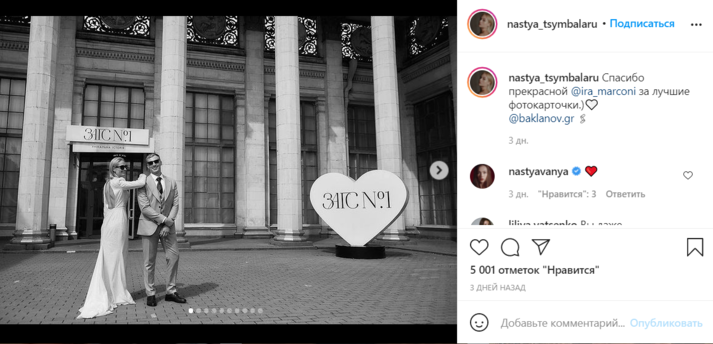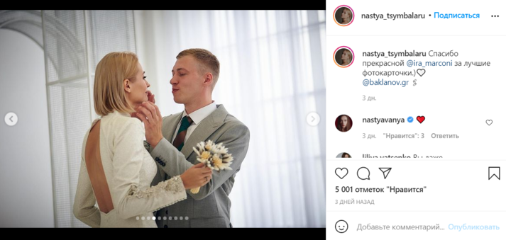 «Мы организовали все за два дня. Когда нам сообщили, что все-таки есть два общих выходных, свободных от съемок, мы решили, что откладывать роспись еще на год (а он был бы уже четвертым) больше не хотим. Вечером накануне торжества у нас не было ни костюма, ни колец, ни видеографа, ничего и я была уверена, что мы все отменим. Но Гришино "все будет" сработало и вдруг начали появляться люди, которые методом невероятных усилий сделали все, чтобы это важное для нас событие все-таки состоялось», — рассказала Цымбалару.