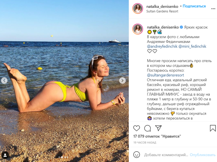 Украинская актриса Наталья Денисенко, которая на днях в четвертый раз вышла замуж за своего мужа, показала фигуру в бикини.