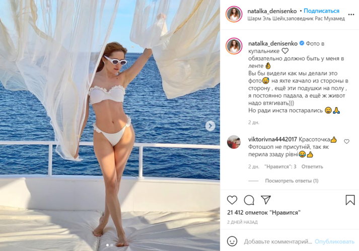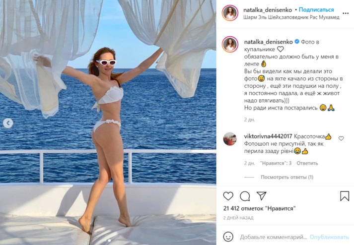 «Фото в купальнике обязательно должно быть у меня в ленте! Вы бы видели как мы делали это фото! На яхте качало из стороны в сторону, еще эти подушки на полу, я постоянно падала, а еще ж живот надо втягивать! Но ради инста постарались», — рассказала Наталья.