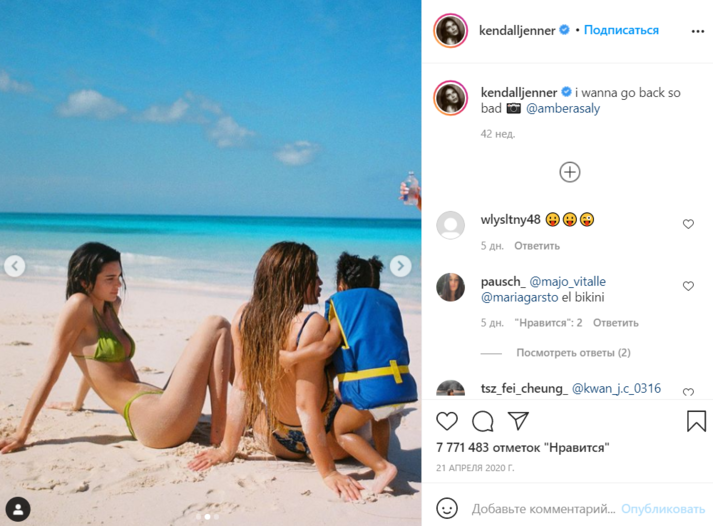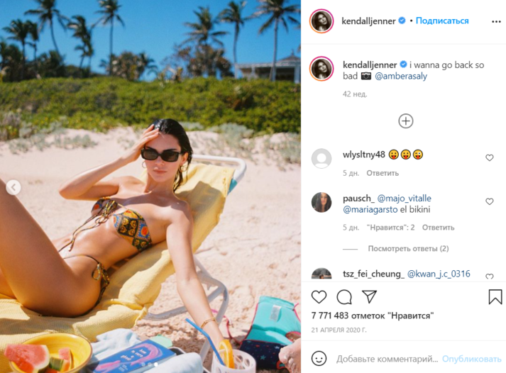 Например, предпринимательница Кайли Дженнер опубликовала в своих соцсетях фото в голубом бикини с золотистой цепочкой. Ее старшая сестра, 25-летняя супермодель Кендалл Дженнер, тоже надевала разноцветный купальник подобным образом во время отпуска на Багамских островах.