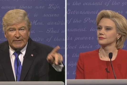 За общением конкурентов, которое длилось полтора часа, следил чуть ли не весь мир. А вот комедийное шоу Saturday Night Live на канале NBC сняла полноценную пародию на дебаты. Роль Трампа досталась голливудскому актеру Алеку Болдуину. Его оппонента, Хиллари Клинтон, изобразила актриса Кейт Маккиннон.