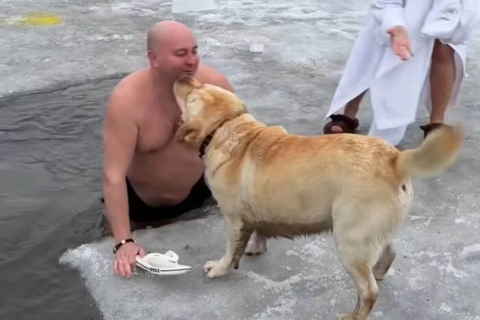 Юрій Ткач скупався у крижаній воді, а рудий хвостатий друг чекав на березі та підтримував актора. Актор зізнався, що не знає, як звуть його рудого хвостатого друга, але стало зрозуміло одразу, що він «кращий друг».