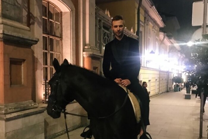 Макс Барських здивував киян появою на коні в центрі міста