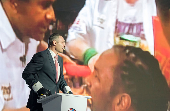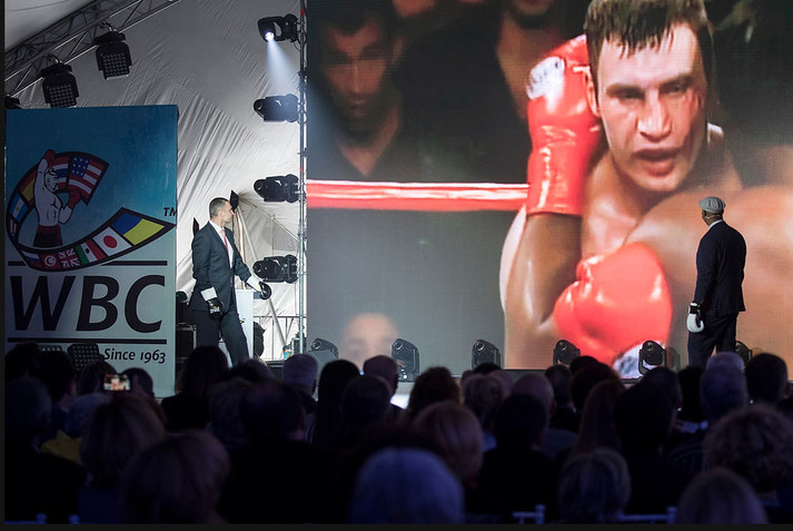 Такий вихід зірок боксу відбувся під час церемонії відкриття 56-го Конгресу Всесвітньої боксерської ради (WBC), який вперше проводять у Києві, інформує прес-служба мера Києва.