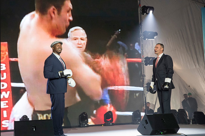 15 років потому. Віталій Кличко та Леннокс Льюїс знову вдарили один одного рукавичками. Фото