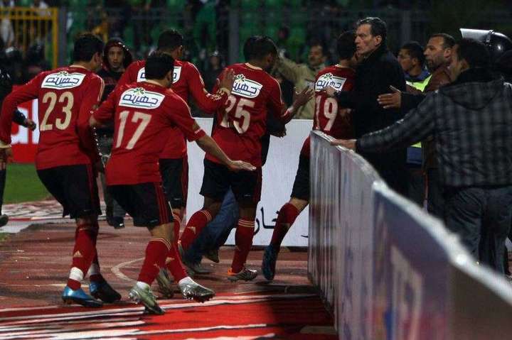 Як повідомляє AFP, гасла були присвячені трагедії, яка трапилася в лютому 2012-го року, коли в зіткненнях між фанатами «Аль-Ахлі» і «Аль-Масрі» загинули 74 людини.