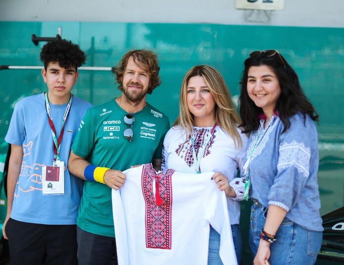 Українська делегація зустрілася з Феттелем, подякувала йому за підтримку України (яку гонщик демонструє на кожному етапі, бо його шолом розмальований жовтим і синім кольорами, а також на амуніції пілота зроблений напис «Ні війні»). Також українці вручили німецькому спортсмену справжню українську вишиванку.