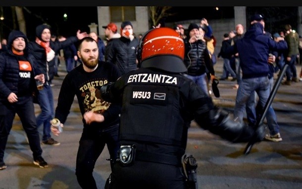 Вболівальники московського «Спартака» влаштували криваві розбірки з фанатами іспанського «Атлетіка» в Більбао перед матчем 1/16 Ліги Європи, в результаті яких був смертельно поранений поліцейський і четверо людей отримали поранення.