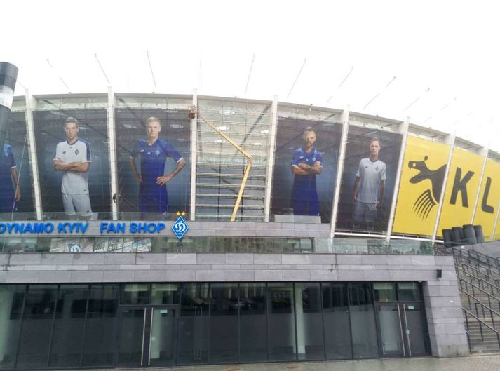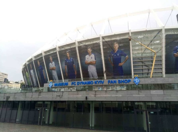 Вже встановлено кілька рекламних банерів і зображень футболістів «Динамо» в новій ігровій формі