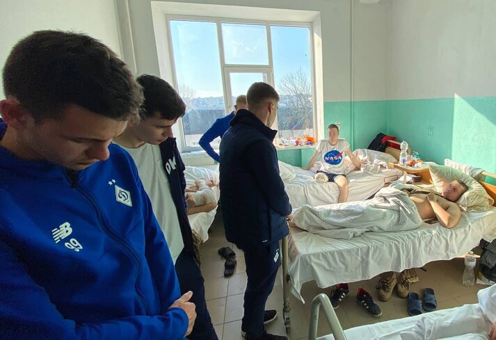 Гравці та тренерський штаб відвідали одну з лікарень, щоб особисто потиснути руки пораненим українським військовим