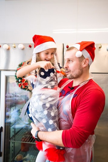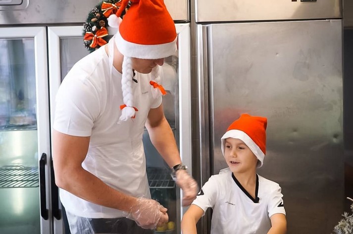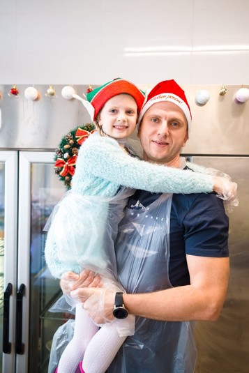 Борис Пуховський з сином Артемом і Геннадій Комок з донькою Ксюшею готували головний салат свята. А готувати десерт довірено було капітану команди Захару Денисов з сином Матвієм, та Павлу Гурковськомуз 7-ми річною донькою Дашею.