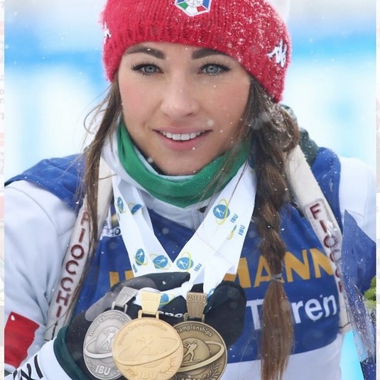 Дворазова бронзова призерка Олімпійських Ігор, чемпіонка світу (доречі титул завойовано тут же в Естерсунді), володарка двох срібних і трьох бронзових нагород чемпіонату світу, не лише круто виступає, а й шикарно виглядає на змаганнях та в повсякденному житті. «Главком» вирішив підготувати для любителів біатлону, та шанувальників красивих спортсменок, добірку гарних фото 29-річної італійки.