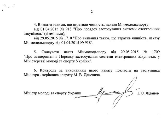 Стосовно нібито присвоєння коштів Міністром молоді та спорту, призначених для закупівлі спортивного обладнання - це повна нісенітниця та відвертий наклеп. Інформуємо, що міністр Ігор Жданов вже звернувся до адвокатів та буде подавати позов проти пана Сириці щодо захисту честі, гідності та ділової репутації.