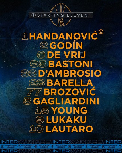 Зі стартових хвилин матчу у Дюссельдорфі вийдуть наступні футболісти «Інтера»: Хандановіч – Годін, де Врей, Бастоні – Д'Амброзіо, Барелла, Брозовіч, Гальярдіні, Янг – Мартінес, Лукаку.