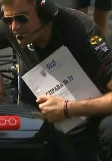 «Уважні любителі автогонок помітили цікавий момент: на перегонах Formula Renault у Монако інженер однієї з команд з текою «Справа» з тризубом», - написав він.
