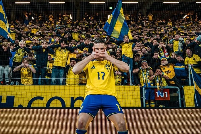 Жест Віктора Йокереса став не лише його візитівкою, а й справжнім нічним жахом для вболівальників збірної України під час нещодавнього відбору на Чемпіонат світу 2026. Рішення про юридичне оформлення прав на святкування Йокерес прийняв одразу після завершення плейоф кваліфікації. Саме в півфінальному матчі проти України, який завершився з рахунком 3:1, швед оформив історичний хет-трик у ворота Анатолія Трубіна, ставши першим гравцем в історії, кому вдалося забити тричі в одному матчі проти нашої національної збірної.