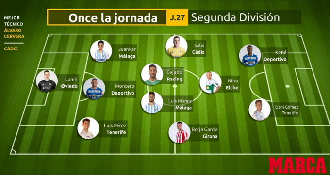 Головна спортивна газета Іспанії - видання Marca - підбила підсумки 28-го туру у Сеґунді та подала власну версію символічної збірної вікенду.