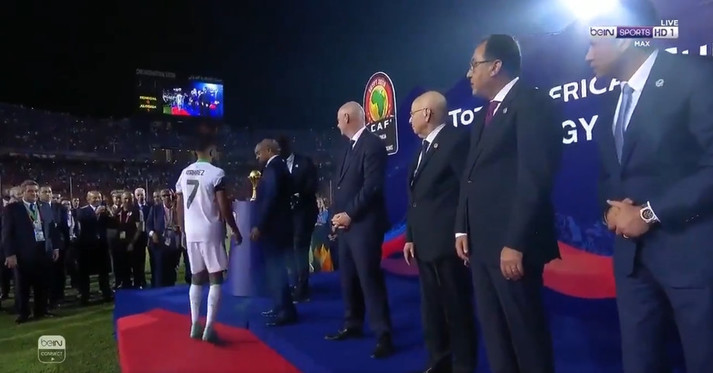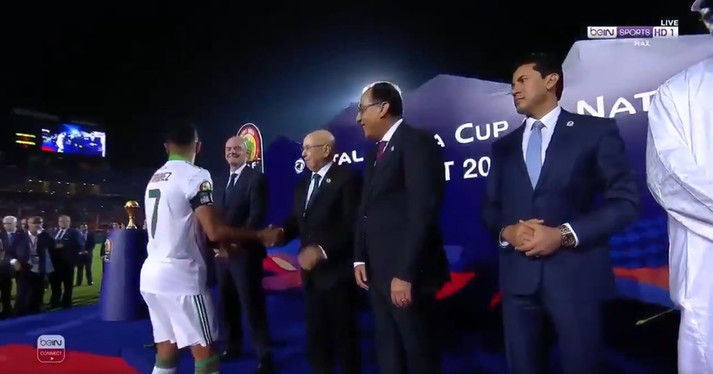 Під час церемонії нагородження Марез на правах капітана традиційно привітав офіційних осіб. Обмінявшись рукостисканнями з президентом ФІФА Джанні Інфантіно і ще одним чиновником, Ріяд проігнорував представників єгипетського уряду і, повернувшись до них спиною, відправився за трофеєм.