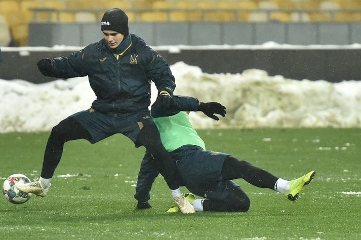 Мороз і сніг вплинули на тренування збірної України з футболу у Києві. Фотогалерея