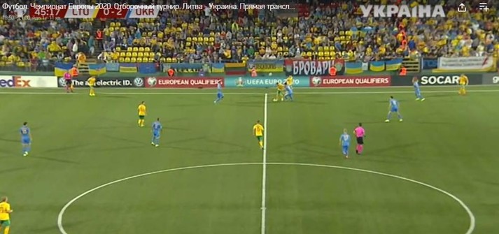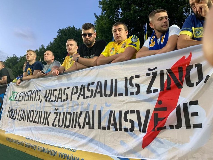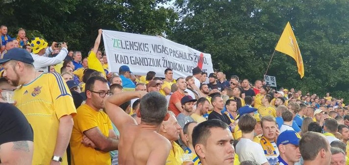 Під час матчу відбірного турніру Євро-2020 між футболістами збірних Литви і України гостьові вболівальники розтягнули текстовик литовською, який у перекладі на українську лунає так: «Зеленський, весь світ знає, що вбивці Гандзюк на свободі».