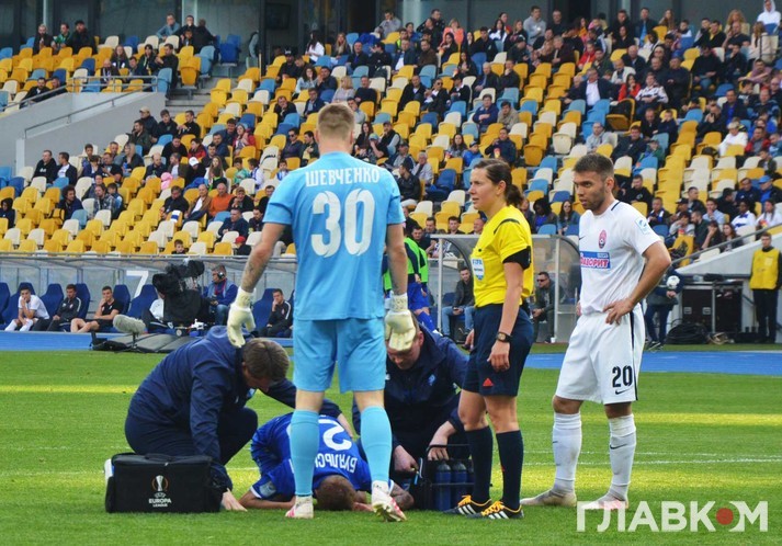 Що дійсно засмучує динамівців і їх прихильників - травма півоборонця Віталія Буяльського у середині другого тайму. Гравець травмувався у наслідок зіткнення з воротарем суперників Микитою Шевченком. Голкіпер рішуче вийшов з воріт, але, на лихо Буяльського, в'їхав у нього двома колінами.