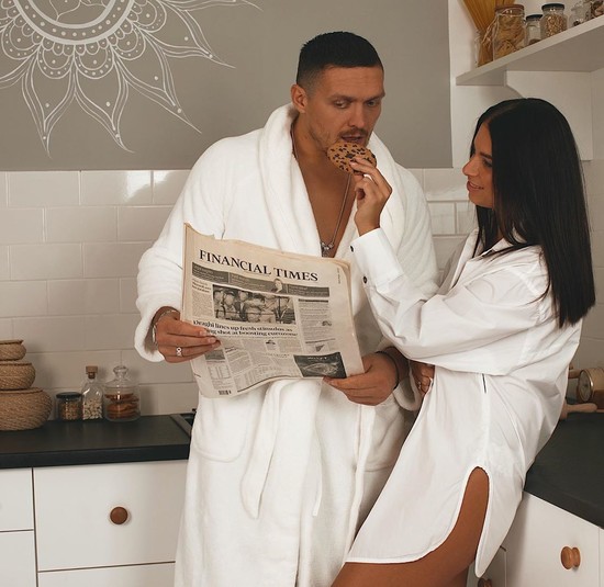 Всесвітньо-відомий український боксер Олександр Усик разом зі своєю чарівною дружиною Катериною знявся у зворушливій фотосесії. Світлини ніби відображають кадри домашнього життя подружжя Усиків – пара в халатах снідає на кухні, зустрічає новий рік під ялинкою, а окремої уваги заслуговує серія гарячих фотографій Катерини в ванній. Сексуальні знімки виклала в своєму акаунті в Instagram фотограф Олена Сергєєва.