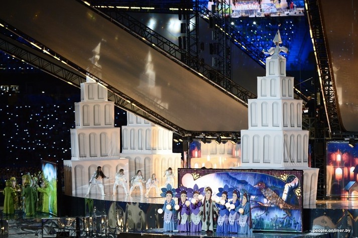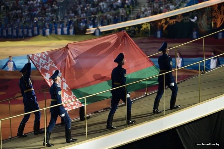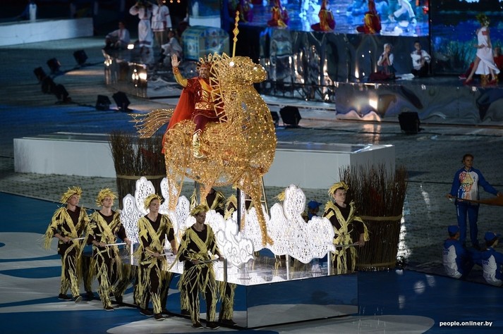 На стадіоні «Динамо» в білоруській столиці Мінську відкрилися другі Європейські ігри. Організатори потішили глядачів призабутими з часів шкільної художньої самодіяльності декораціями. Усі оголошення над ареною лунали двома мовами - англійської і російського. Благо, хоч театралізовані постановки під час церемонії озвучувалися білоруською. В основному, бо й там без «общєпонятного» теж не обійшлося. Нічого дивного, адже стійкий запах нафталіну дійству забезпечував один з основних постановників дійства, російський композитор Ігорь Крутой.
