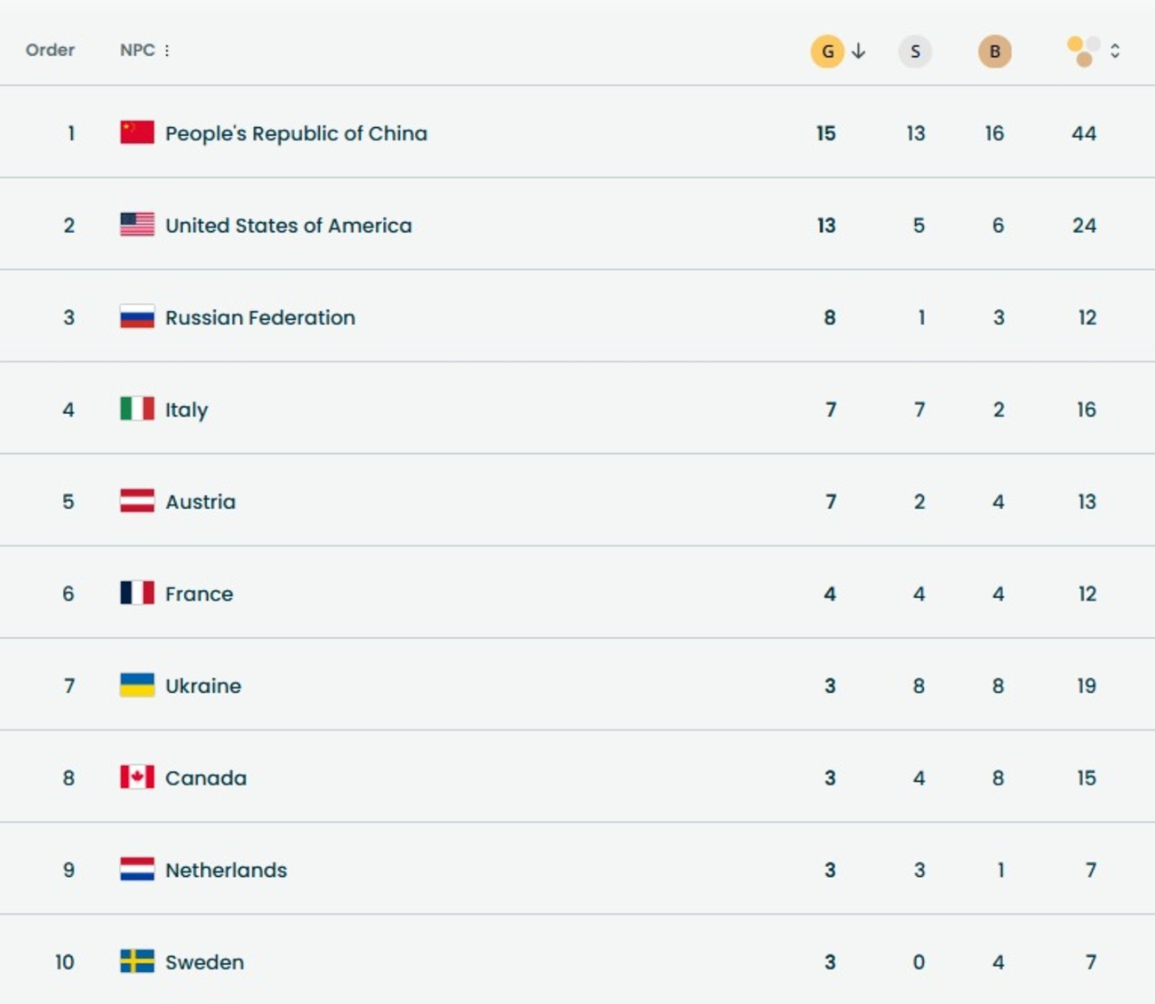Медальний залік Паралімпійських ігор 2026