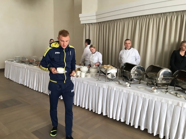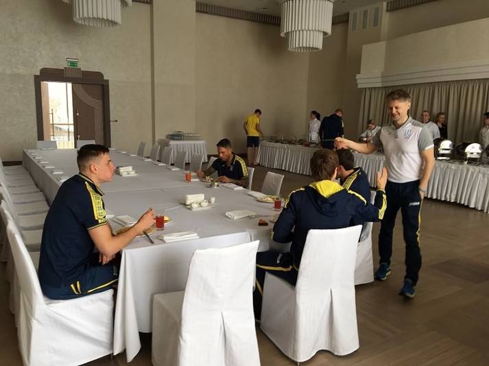 Зокрема, як видно зі світлин, футболісти, які прибули у розташування команди, вже встигли пообідати.