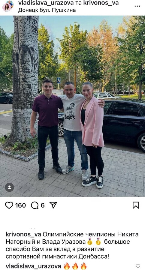 Підсанкційний олімпійський чемпіон зі спортивної гімнастики росіянин Микита Нагорний та інша російська олімпійська чемпіонка Владислава Уразова незаконно відвідали окуповані українські міста Донецьк та Маріуполь. Про це повідомляє «Главком».