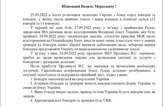 ФБУ вимагають від спортсменів та тренерів відмовитися від медалей та їхати додому