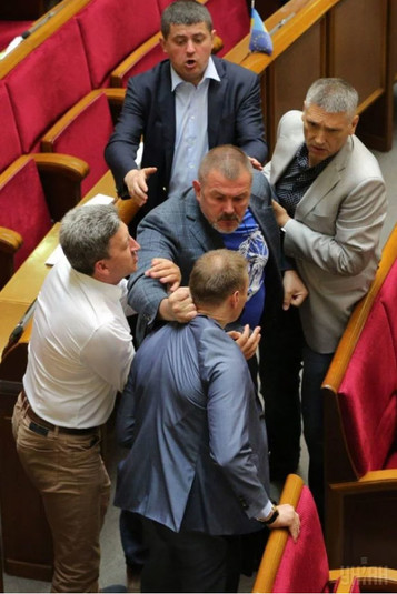 У підсумку іншим парламентарям довелося розбороняти розбишак.